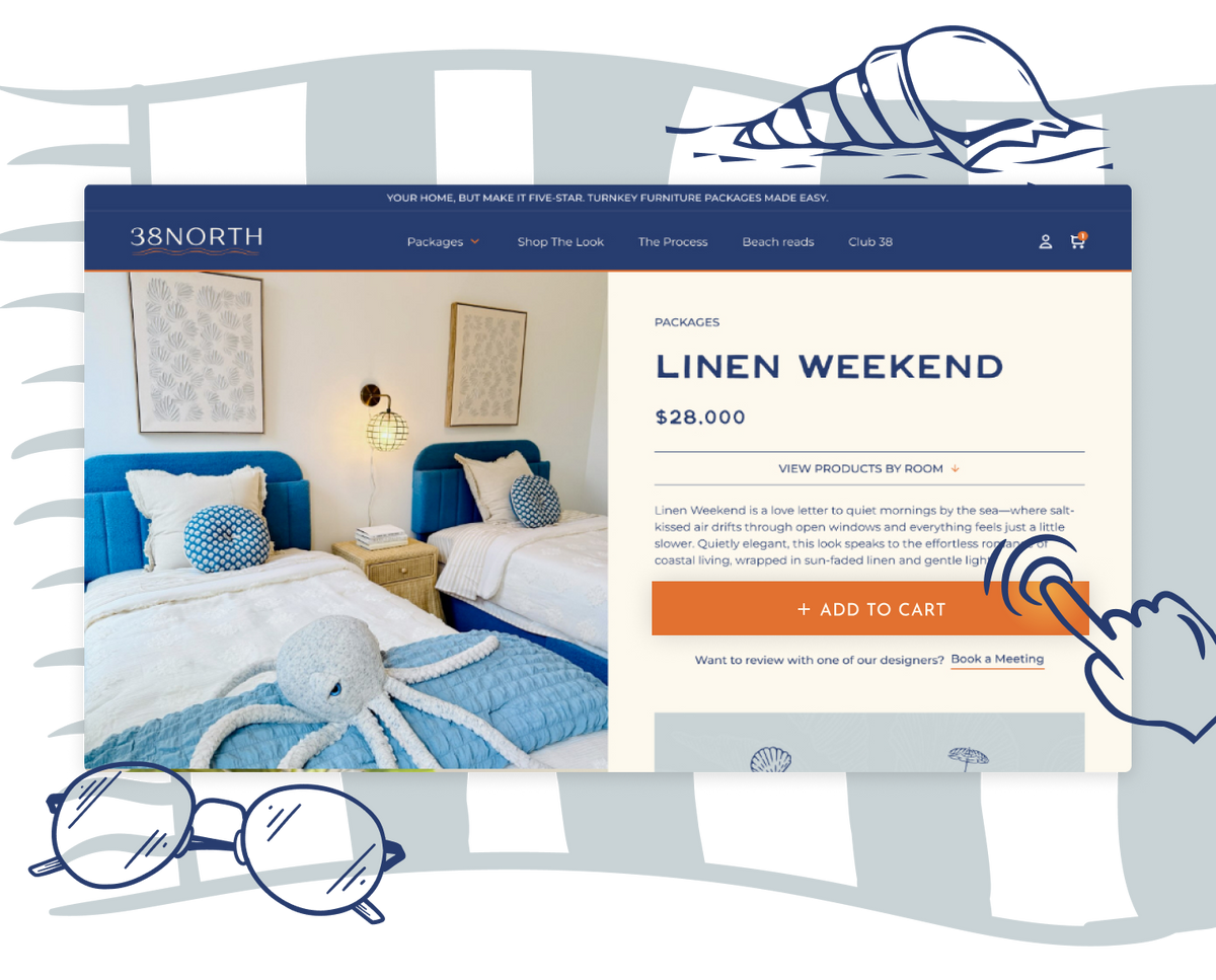 Select one of our signature furniture packages, thoughtfully designed for vacation rentals and second homes. Each package includes coordinated furniture, lighting, textiles, artwork, and accessories — chosen for durability, comfort, and timeless resort style.
